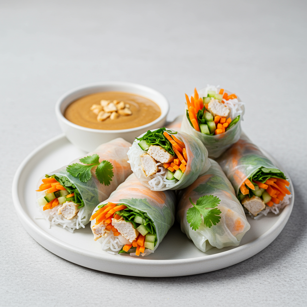 - 8.Serve the rolls with the peanut dipping sauce on the side.