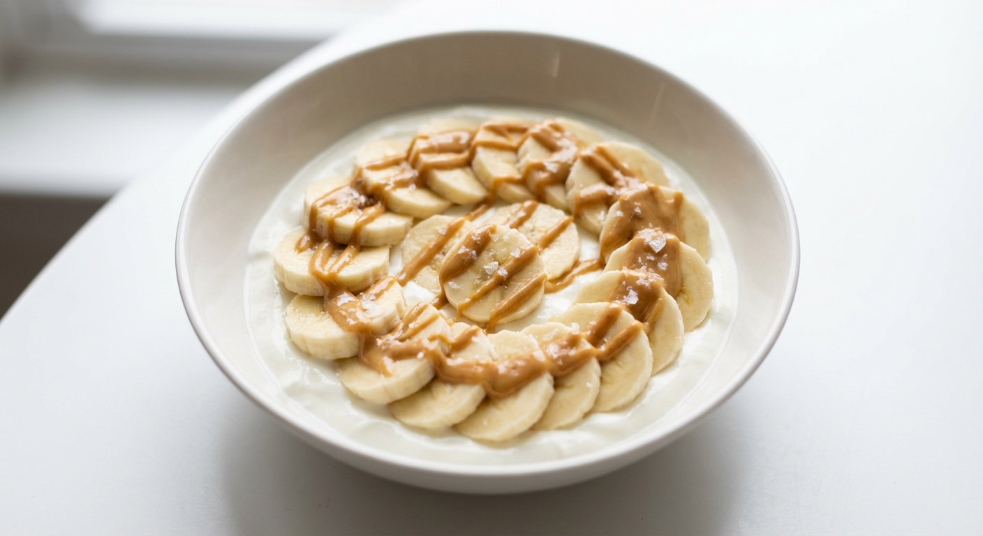 - 3.Slice your banana into thin rounds and arrange them neatly over the top of the yogurt.