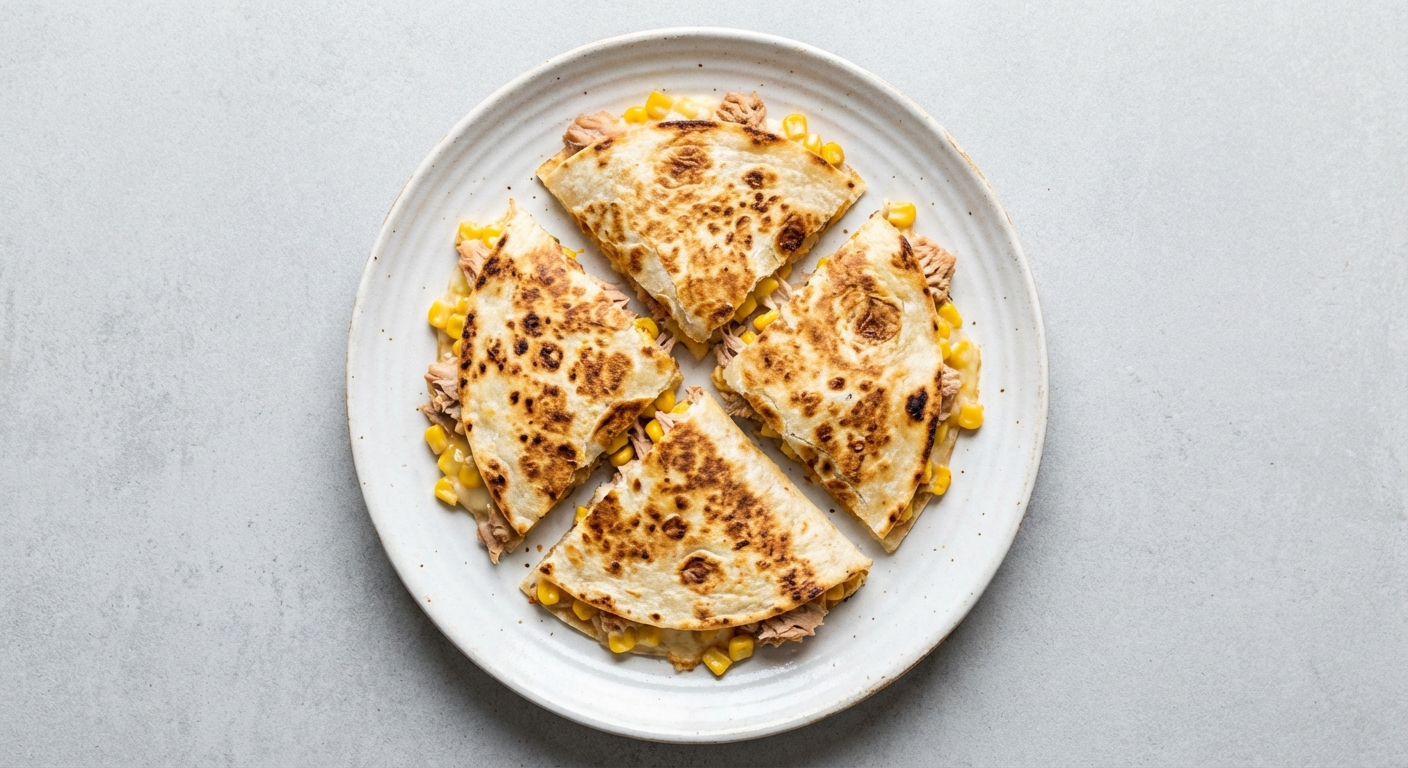 - 2.Heat oil in a large frying pan. Add tortilla to the pan and layer with tuna mixture. Add second tortilla on top of tuna mixture. Cook on one side until golden brown and then flip over to the other side and cook for a further 5-10 minutes until tortilla is brown.